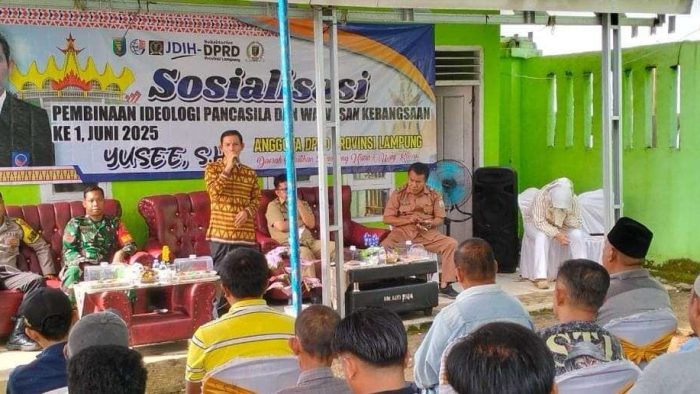 Way Kanan, – Anggota DPRD Provinsi Lampung dari fraksi Nasdem. Yusee mensosialisasikan pembinaan ideologi Pancasila dan wawasan kebangsaan di kantor Kampung Banjar Masin kecamatan Baradatu Kabupaten Way Kanan, Senin(16/6/2025).