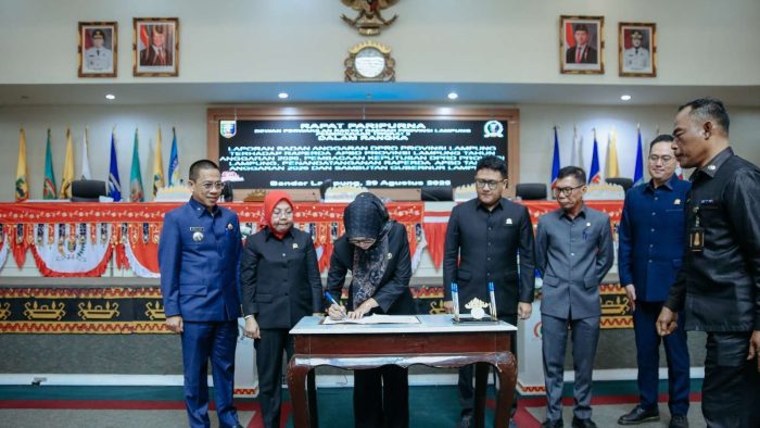 Bandar Lampung, – Pemerintah Provinsi Lampung bersama Dewan Perwakilan Rakyat Daerah (DPRD) Provinsi Lampung menyepakati Rancangan Peraturan Daerah (Raperda) tentang Anggaran Pendapatan dan Belanja Daerah (APBD) Tahun Anggaran 2026. Kesepakatan tersebut disahkan dalam Rapat Paripurna DPRD yang digelar di Ruang Sidang DPRD Provinsi Lampung, Jumat (29/8/2025).